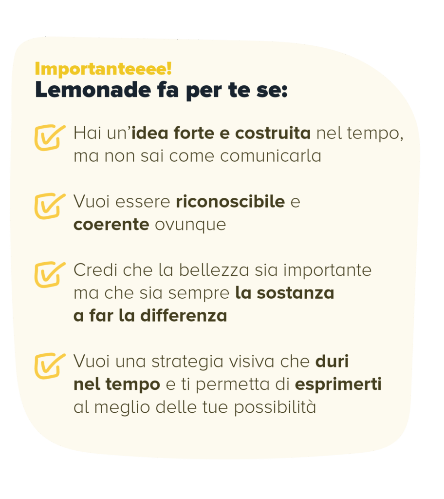 Così quando mi son ritrovata ad aprire la partita iva, Simona ha fatto spazio a Lemonade, un riassunto delle mie qualità, con l’obbiettivo di portare in campo la miglior versione di me.
